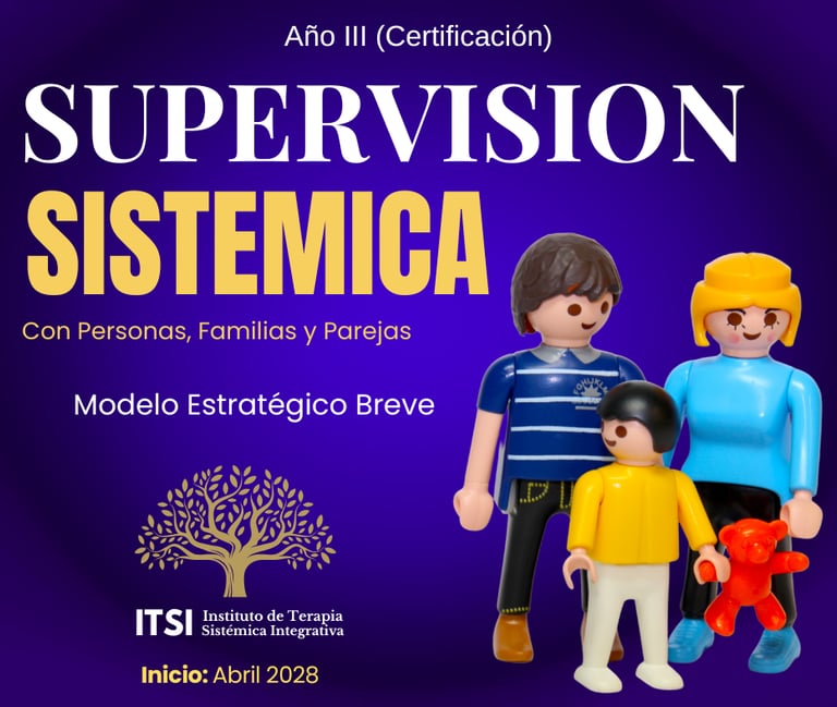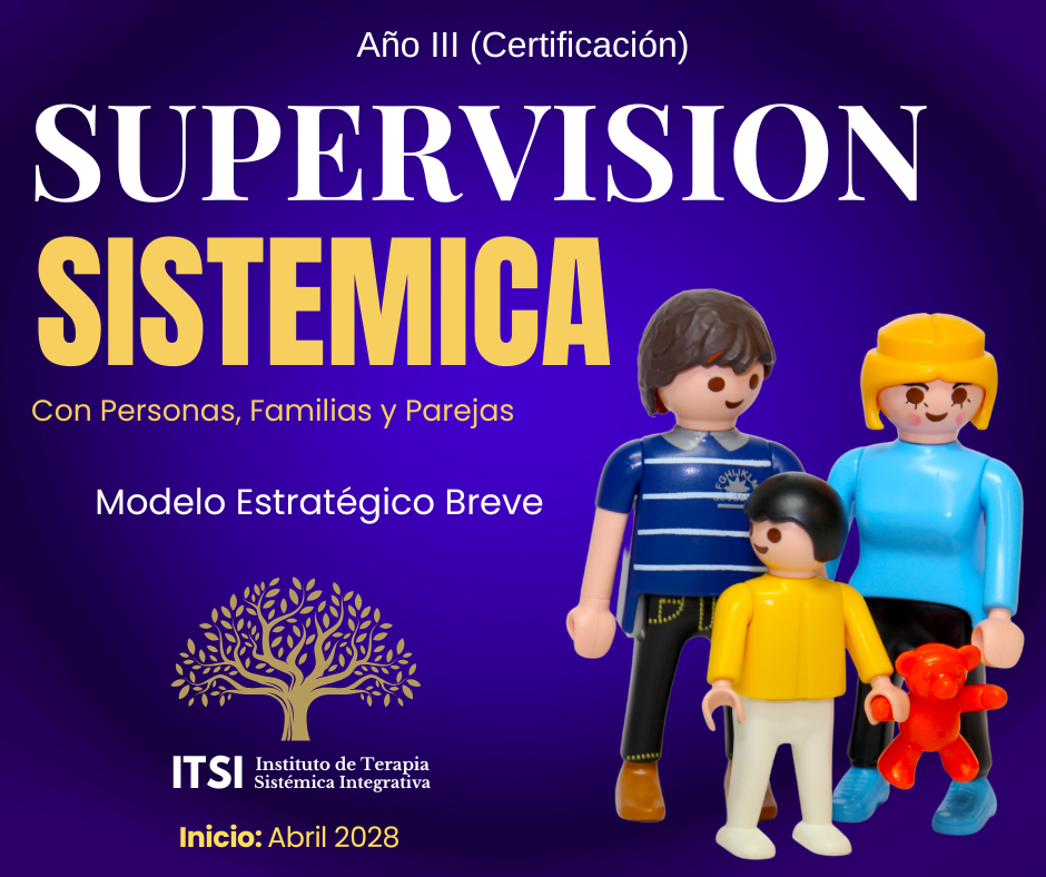 El INSTITUTO DE TERAPIA SISTÉMICA INTEGRATIVA (ITSI) organiza la Supervisión Sistémica Estratégica (Año III) opcional para todos los alumnos egresados de la Profundización en Clínica Sistémica Estratégica (Aquí para conocer el Programa del Año II) interesados en culminar el proceso de Formación Completa en Terapia Sistémica Estratégica Breve del Instituto y ser acreditado como un Terapeuta Sistémico Estratégico Certificado.